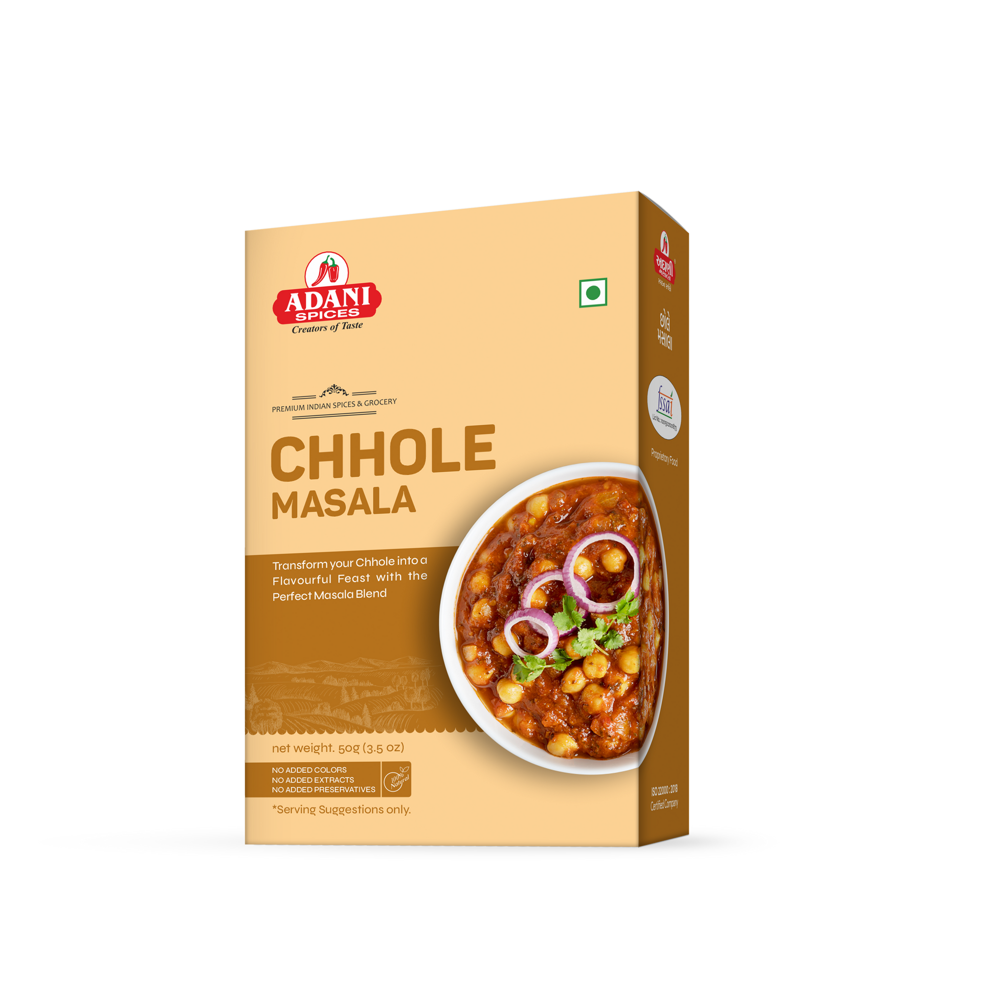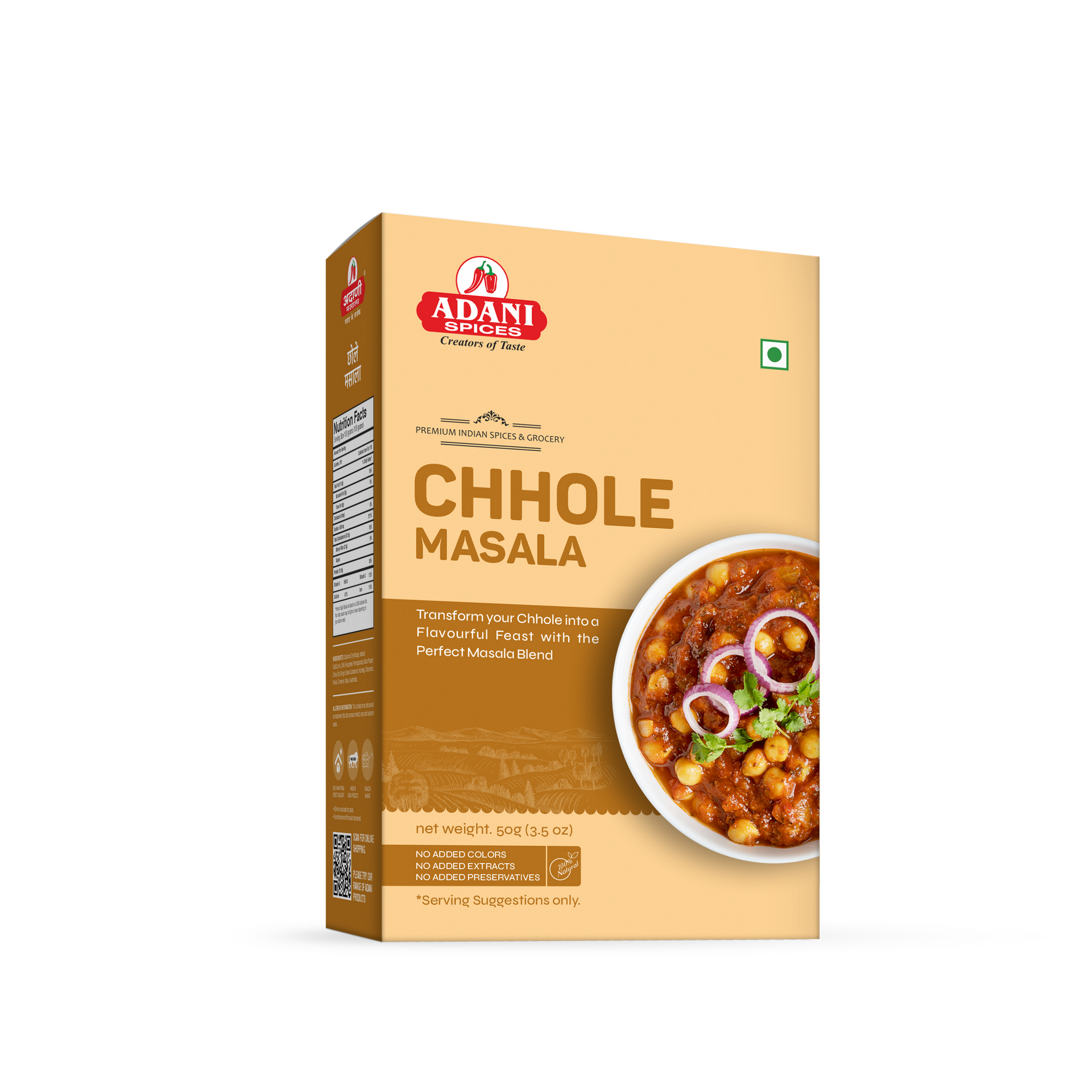 - CHOICE OF EVERYONE: This Adani Spices Chholle Masala is a Choice For Every Indian Homes Because it Gives Perfect Blend of Taste Color & Aroma. It Well Balanced Ingredients Makes The Food More Tastier.