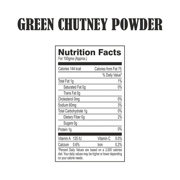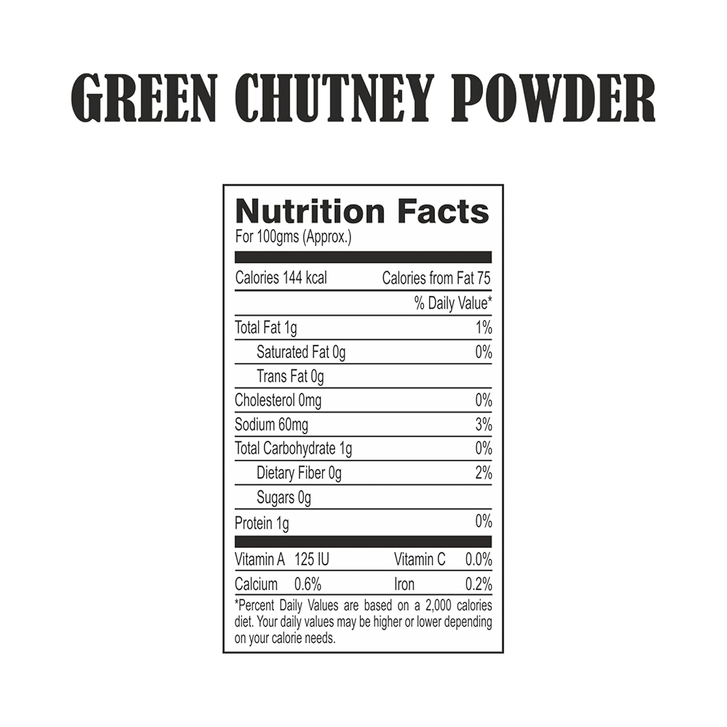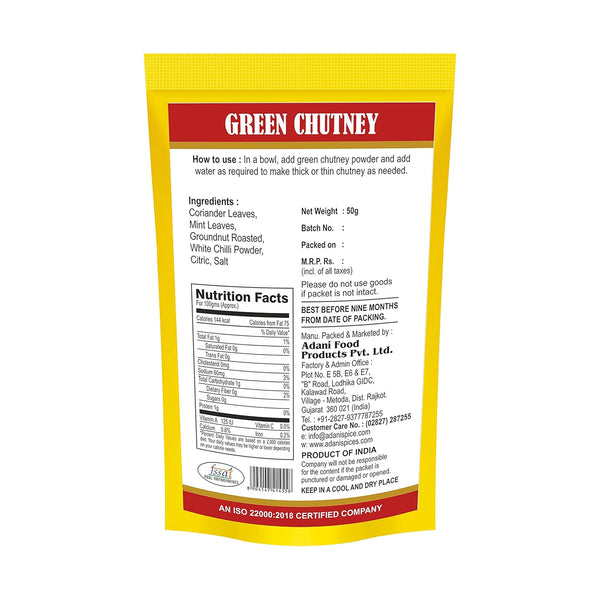 - Key Ingredients: Coriander Leaves, Mint Leaves, Roasted Groundnut, White Chilli Powder, Citric, Salt