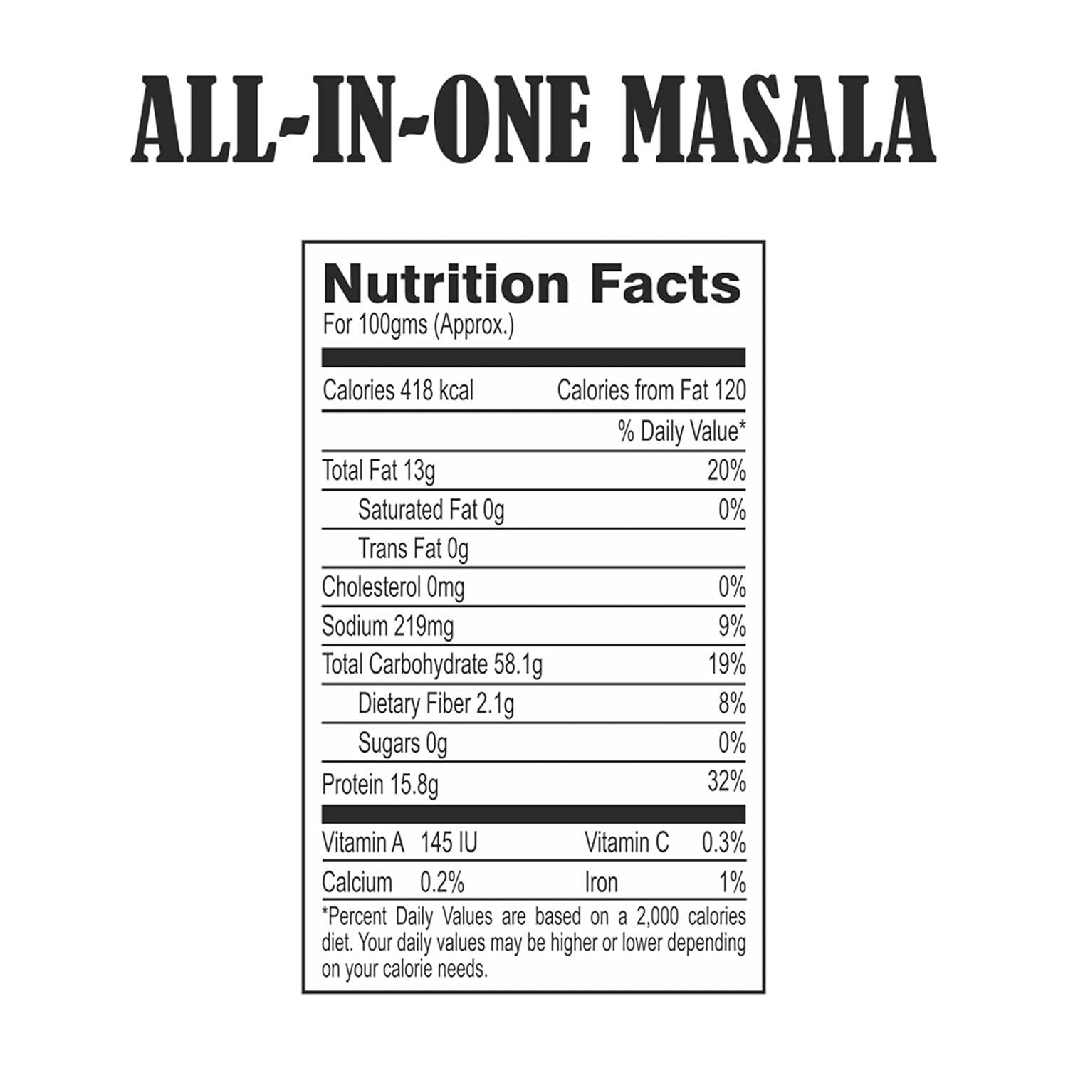 - KEY INGREDIENTS: Coriander, Cumin, Fennel, Cinnamon, Fenugreek, Nutmeg, Black Cardamom, Black Pepper Whole, Turmeric, Sugar, Clove, Amchur, Kashmiri Chilli, Salt, Corn White.